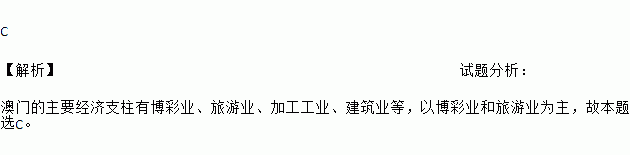C 【解析】试题分析: 澳门的主要经济支柱有博彩业、旅游业、加工工业、建筑业等,以博彩业和旅游业为主,故本题选C。