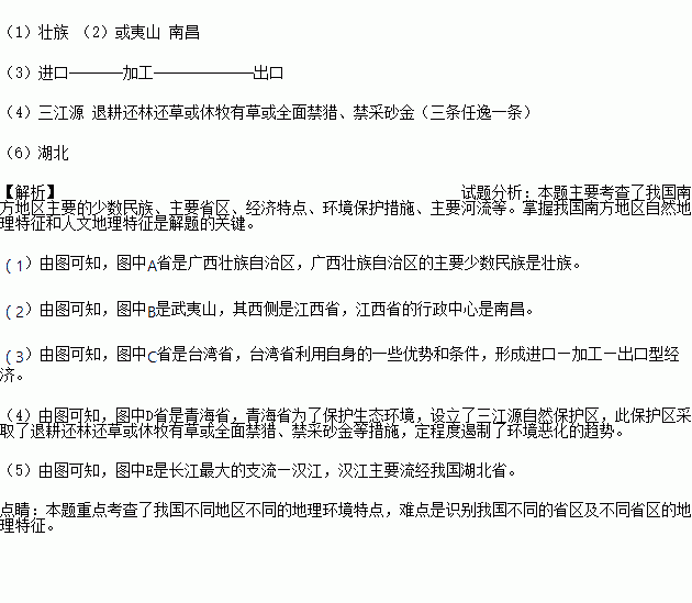 (4)为了保护此地区的生态环境,我国在D省设立了-----------自然保护区目前,此保护区采取了--------------------------(例举―条)等措施,定程度遏制了环境恶化的趋势。