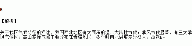 A. 我国没有温带大陆性气候 B. 季风气候显著,有三大季风气候区