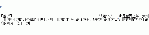 一个大洲的自述:我在各大洲中面积排第二,与大哥仅一河之隔,地形以高原为主,在我的胸膛里流淌着世界第一长河——尼罗河。这个大洲是 ( )
