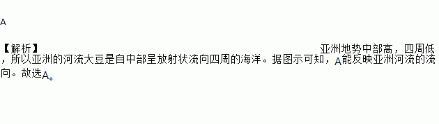 下列示意图能够正确反映亚洲河流流向的是