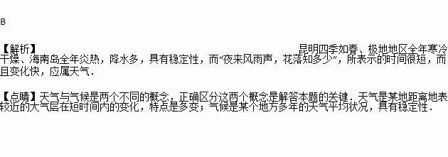 A. 昆明四季如春 B. 夜来风雨声,花落知多少