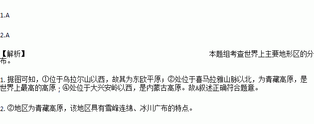 A. ①处是东欧平原 B. ②处是世界上最大的高原