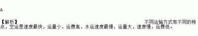 A 【解析】不同运输方式有不同的特点,空运是速度最快,运量小,运费高,水运速度最慢,运量大,速度慢,运费低。