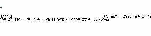 贴春联是我国的传统民俗,春联“林海雪原、沃野龙江麦浪滔”、“碧水蓝天,沙滩椰林稻花香”反映的省区分别是( )
