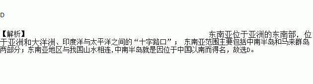 D. 东南亚地区与我国山水相连,中南半岛就是因位于中国以南而得名