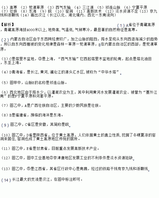 (4)图甲中,D省区的南部是有“中华水塔”之称的 地区。