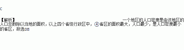 下图为我国四个省级行政单位的人口与面积柱状图,四个省级行政单位中,人口密度最小的是( )