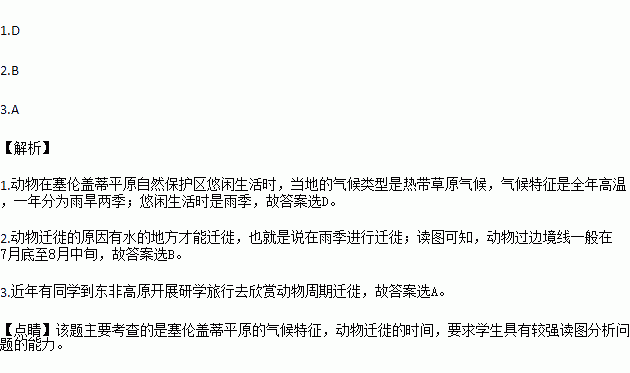 1.动物在塞伦盖蒂平原自然保护区悠闲生活时,当地的气候特征是