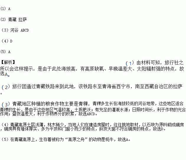 ²ÄÁÏ£ºÇà²ØµØÇøÊǵ±½ñÂÃÓÎÈÈµãµØÇøÖ®Ò»¡£Ä³ÂÃÓÎÍÅ7ÔÂÏÂÑ®×¼±¸µ½Î÷²ØµØÇøÂÃÓΣ¬ÂÃÐÐÉçÐû´«µ¥Ìáʾ£º¢ÙÔçÍíÍâÌס¢ÃÞÒ£»¢Ú×¼±¸ÕÚÑôÉ¡¡¢Ä«¾µ£»¢ÛÓÐÐÄ¡¢ÄÔ¡¢ÑªÒºÏµÍ³¼²²¡Õß²»ÒËÈ¥Î÷²ØÂÃÓΣ»¢Ü´øºÃÓêÒµȡ£