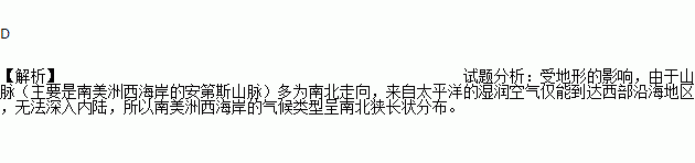 南、北美洲西部沿海地区气候类型呈南北狭长状分布,下列因素中,可能对其产生主要影响的是