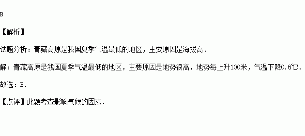 青藏高原是我国夏季气温最低的地区,这是由于青藏高原( )