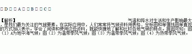 A.温带海洋性气候 B.温带季风气候 C.热带季风气候 D.地中海式气候