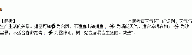 下列天气符号所示天气与生产生活活动搭配合理的是( )