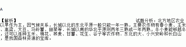 A. 冬小麦、玉米、花生 B. 冬小麦、棉花、甘蔗