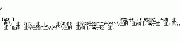 A. 食品、医药 B. 煤炭、石油 C. 电力、钢铁 D. 化工、机械