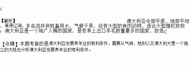 ①草场广布 ②气候条件适合 ③人口多,羊毛、羊肉需求量大 ④没有大型野生食肉动物