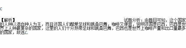 小强的爸爸是我国驻外大使,在那个国家经常看到许多混血种人,国人酷爱足球和跳桑巴舞,咖啡非常便宜。小强的爸爸可能是我国驻哪个国家的大使