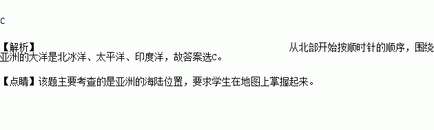 从北部开始按顺时针的顺序,围绕亚洲的大洋是( )
