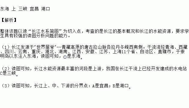 (2)长江水能资源最丰富的河段是_____________游,我国在长江干流上已经开发建成的水电站C是_____________。