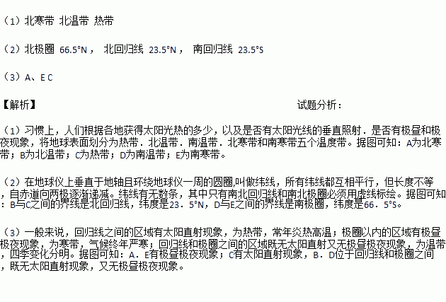 (3)有极昼极夜现象的是____有阳光直射现象的是________。(用字母填写)