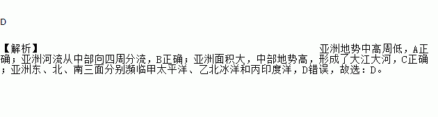 读图,亚洲地形、河流示意图,判断下列说法错误的是( )