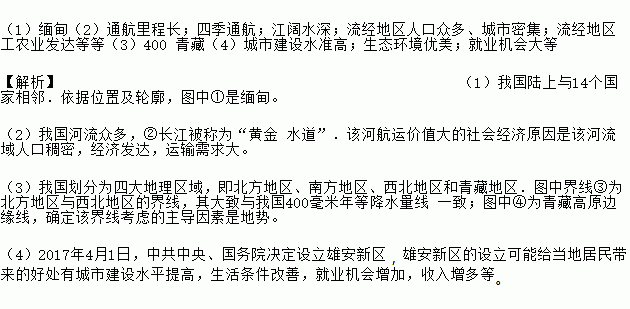 (4)2017年我国决定设立雄安新区。该新区将用最先进的理念和国际一流的水准进行城市建设,打造优美生态环境,并承接北京高新技术等产业的转移。雄安新区的设立给当地居民带来的好处有哪些? (至少写两点)