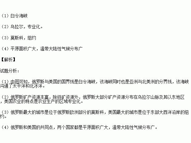 (4)从地形和气候两方面归纳总结俄罗斯和美国的相似性。