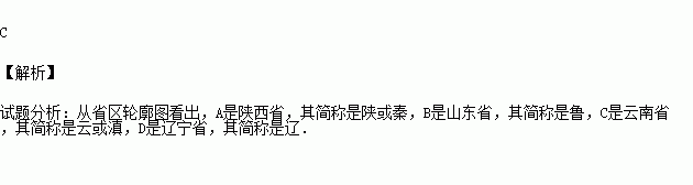下列四个省级行政区的轮廓图与其对应的简称错误的是