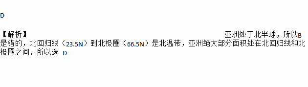 A. 热带 B. 南寒带 C. 北寒带 D. 北温带