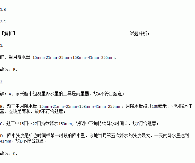 A. ¸ÃÐËȤС×é²âÁ¿½µË®Á¿µÄ¹¤¾ßÊÇÎÂ¶È¼Æ B. ¸ÃµØµ±Ô´¦ÓÚºµ¼¾