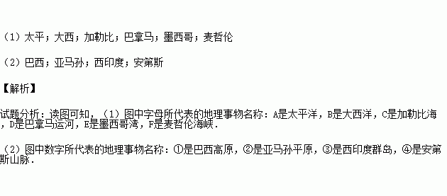 A________洋;B________洋;C________海;D________运河;E________湾;F________海峡