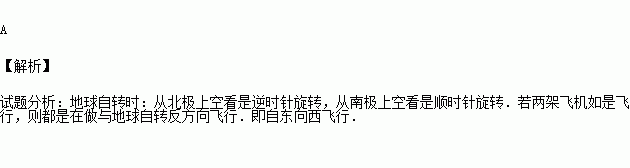 在南极上空看,甲机沿南极圈作逆时针方向飞行;在北极上空看,乙机沿北极圈作顺时针方向飞行,这两架飞机的飞行方向
