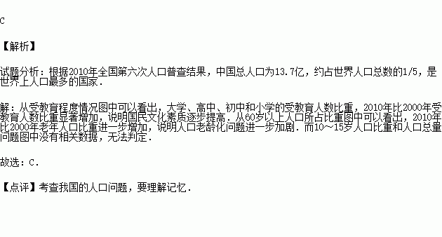 C.国民文化素质提高 D.人口总量开始减少