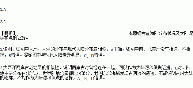 2.下列事实中,可以作为大陆漂移说证据的是( )