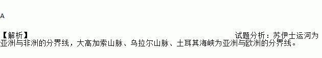 A 【解析】试题分析:苏伊士运河为亚洲与非洲的分界线,大高加索山脉、乌拉尔山脉、土耳其海峡为亚洲与欧洲的分界线。