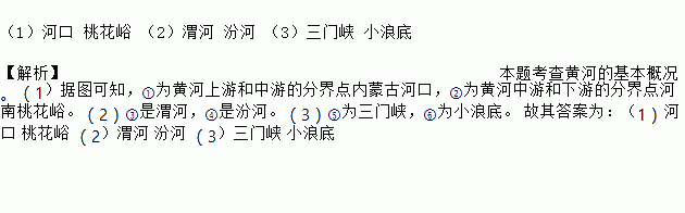 ⑴黄河上、中、下游的分界城市是:①________ ②________ 。