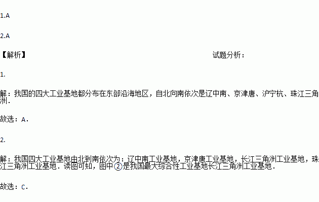 A. 辽中南工业基地 B. 京津塘工业基地