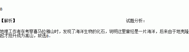 2013年暑假期间,小明在太行山游玩时发现了某些海洋生物的化石。这说明( )