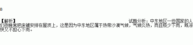 中东地区一些国家的人们夜晚常把床铺安排在屋顶上,这是因为: