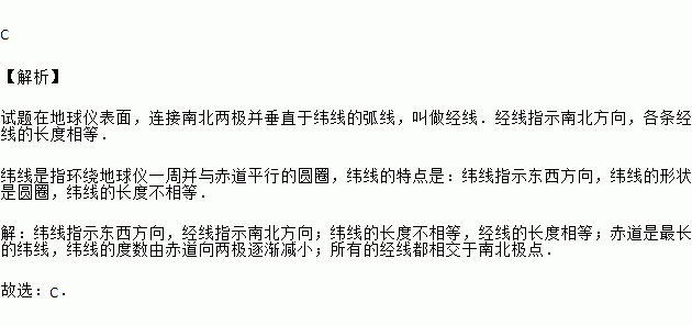C. 赤道是最长的纬线