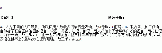 C. 是世界上使用人数最多的语言 D. 在世界上的影响力在逐渐增强