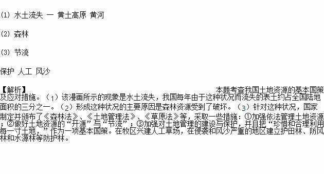 (1)该漫画所揭示的现象是 ,我国每年由于这种状况流失的表土层居世界第 位,我国水土流失最严重的地区是 ,它使流经它的 成为世界上含沙量最大的河流。