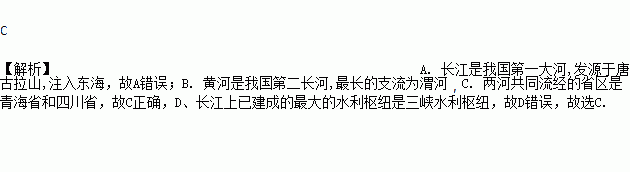 C. 两河共同流经的省区是青海省和四川省D、长江上已建成的最大的水利枢纽是小浪底水利枢纽