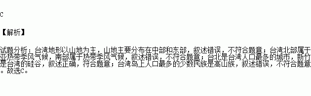 C.台北是人口最多的城市,新竹是台湾的“硅谷”