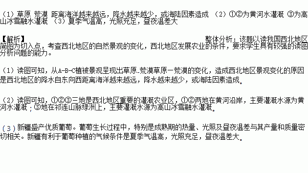£¨1£©´ÓA-B-CÖ²±»¾°¹Û³ÊÏÖ³ö ¡ª»ÄÄ®²ÝÔ¡ª µÄ±ä»¯£¬·ÖÎöÔì³ÉÎ÷±±µØÇø¾°¹Û±ä»¯µÄÔÒò¡£