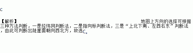 C 【解析】地图上方向的选择可根据三种方法判断,一是经纬网判断法,二是指向标判断法,三是“上北下南、左西右东”判断法,由此可判断出陡崖面朝向西北方,故选C。