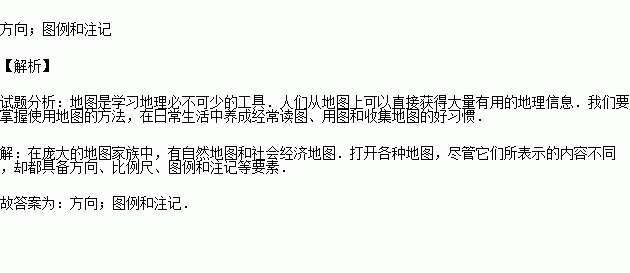 地图上的三要素是比例尺、 和 .