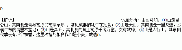 A. ①山的南侧高寒草原上,常见成群的牦牛在觅食