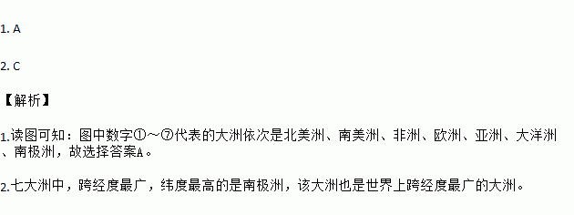 A. 北美洲、南美洲、非洲、欧洲、亚洲、大洋洲、南极洲